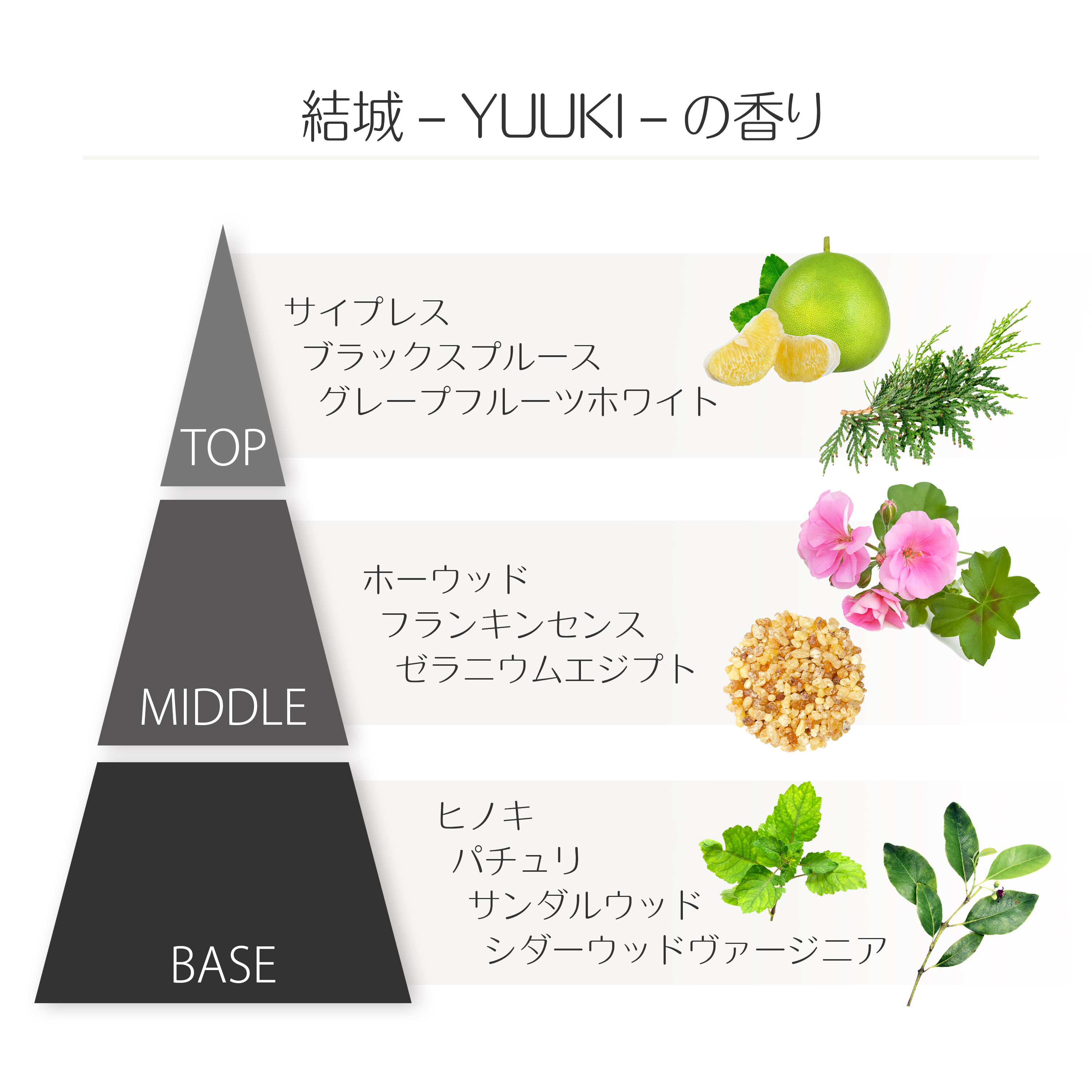 | ブレンド内容 | グレープフルーツホワイト、サイプレス、シダーウッドヴァージニア、ブラックスプルース、ヒノキ、ホーウッド、パチュリー、水蒸気蒸留法ユズ、ゼラニウムエジプト、フランキンセンス、サンダルウッド |